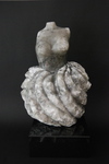 2018De steen gaf aan wat hij wilde worden. Hij liet zich bewerken volgens de ‘taille direct’-methode tot de vorm die bij het moment hoorde. Daar staat ze dan, aards en spiritueel tegelijk, in al haar zachtheid en vrouwelijkheid, niet verlegen om haar rondingen te tonen... Caramel albast, gepolijst, incl. zwart granieten sokkel, unicum.